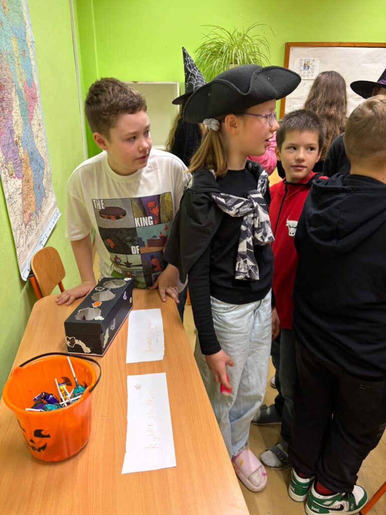 Sice trochu dřív, ale přesto báječně si naši nejmladší užili alespoň během vyučování svátek Halloween. Někteří přišli v krásně strašidelných maskách a téměř všichni si připravili pro své spolužáky halloweenské úkoly nebo dobrůtky. A pak že není škola děsivá 🙂